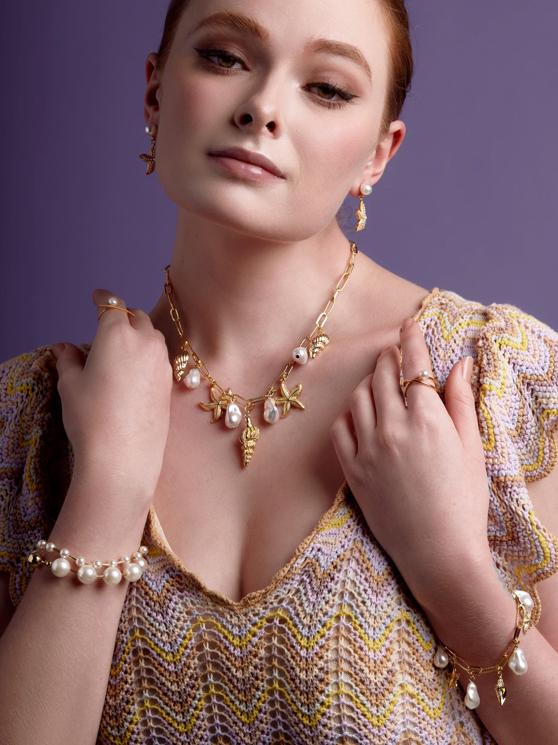 Baroque Pearl and Sea Charm Magnet Bracelet
