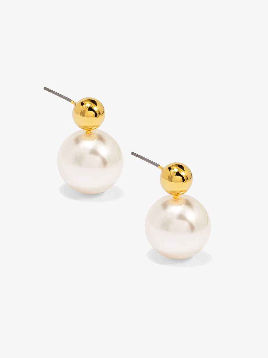 A lustrous faux pearl is paired with a polished gold-tone ball in a sleek stacked design.