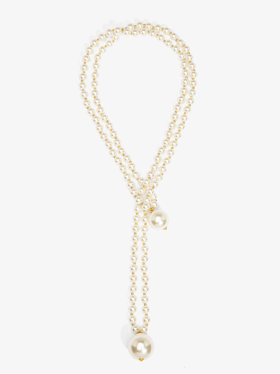 Double Pearl Long Necklace