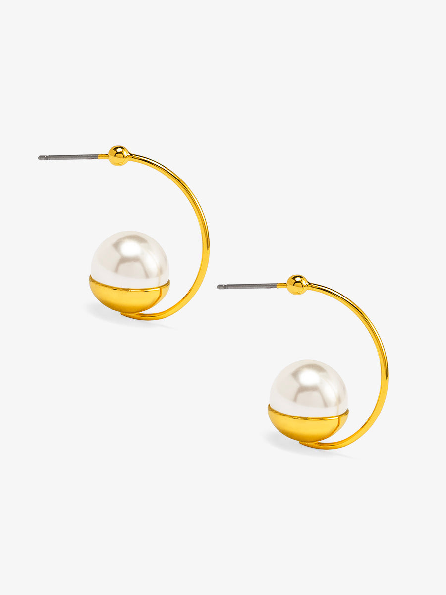 Large Pearl Half Hoop Earring