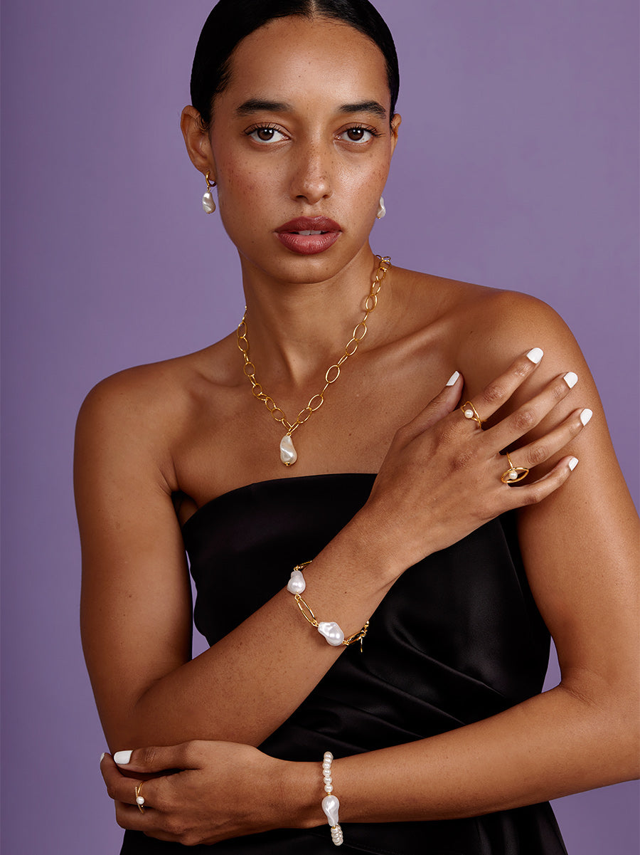 A bold mix of sculptural baroque pearls and open oval links, finished with a magnetic clasp for ease.