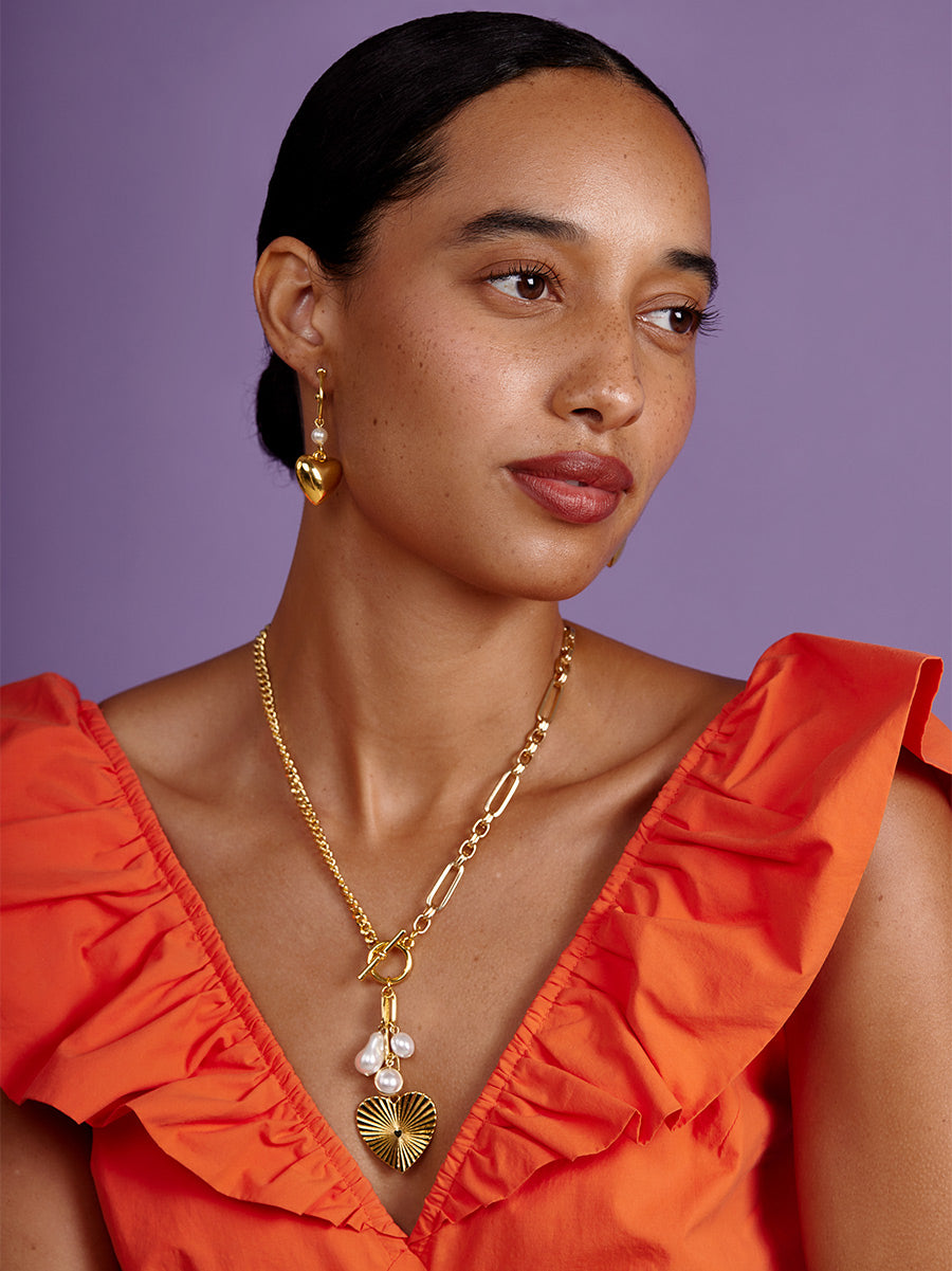 Heart Charm Pearl Hoop Earring