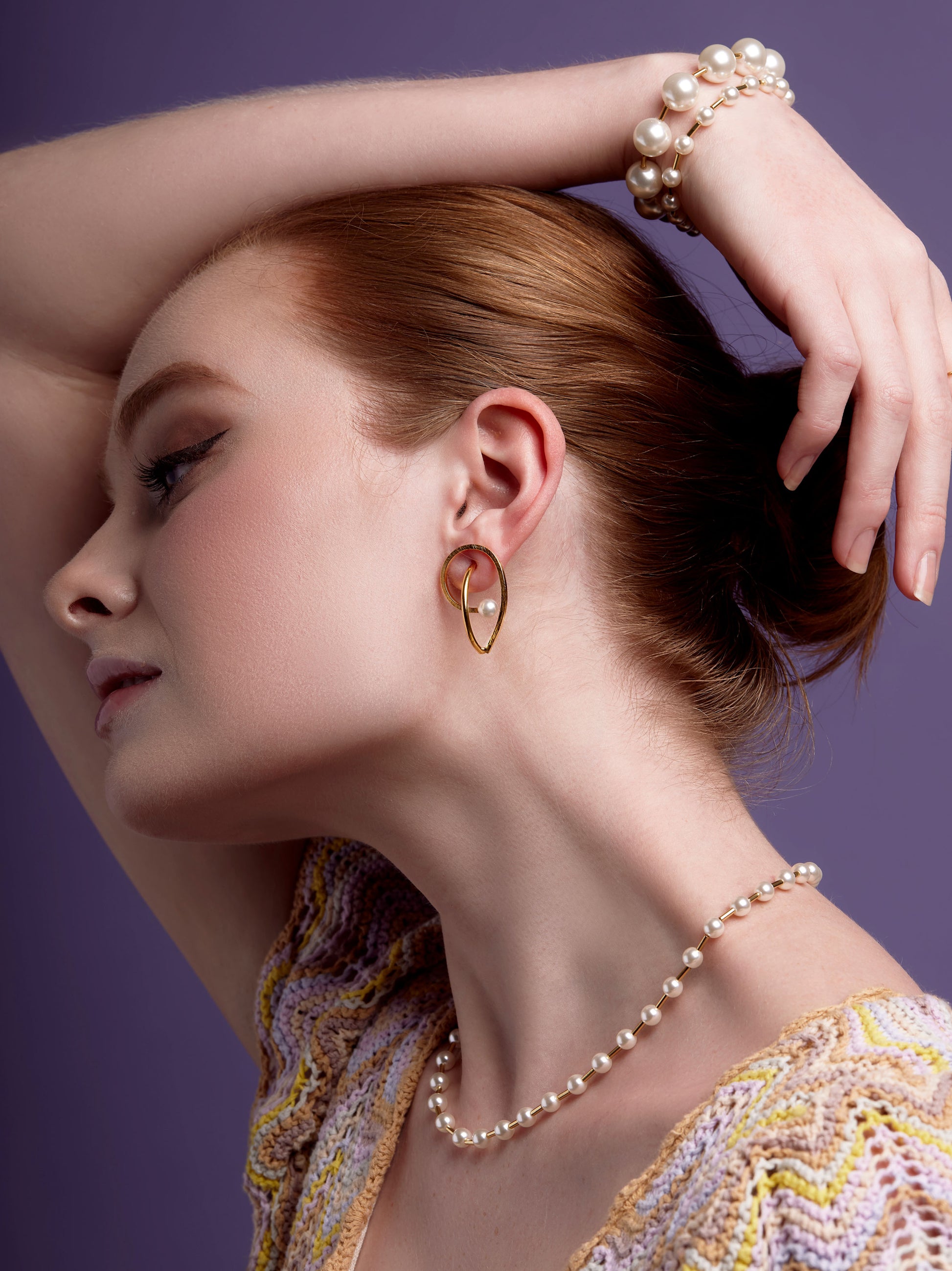 Magnetic pearl beaded short necklace emellished with gold spacers.
